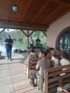 A Honvédsuli Táborában tartottunk ma előadást. Ésik Árpád egyesületi elnök bemutatta egyesületünk felépítését és beszélt a sportlövész szakosztály működéséről, a polgári fegyvertartás jogszabályi hátteréről. Sajtos István 3 danos ju jutsu mester a ju jutsu szakosztály működéséről beszélt és az önvédelmi technikák alkalmazhatóságáról a közelharcban. Boda Róbert volt légiós lőkiképző pedig a biztonságos fegyverkezelés szabályait mutatta be.